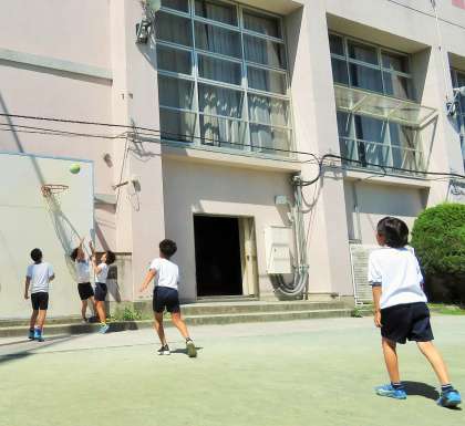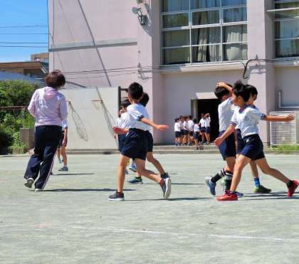 今日は、強い日差しが照りつけています。熱中症予防の目安となる暑さ指数(WBGT)をこまめにチェックしながら、校庭での活動制限、適切な水分補給など、熱中症対策を心がけています。