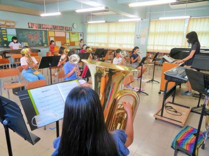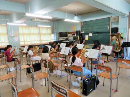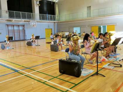 金管バンドは、始業式の日から早起きをして朝練習を頑張っています。