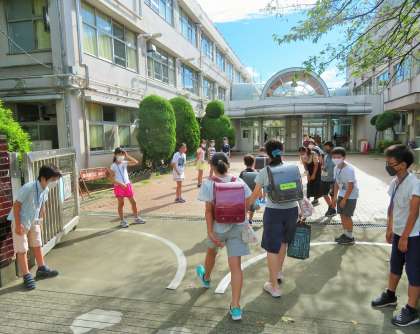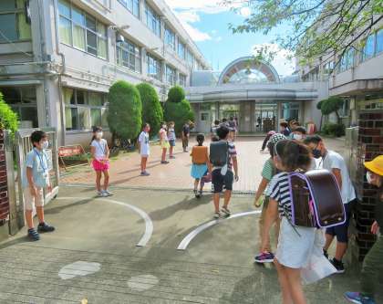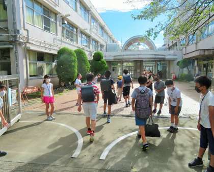 今朝も「優郷の学び舎」あいさつ運動からのスタートです。4年生の子どもたちが、私と一緒に「あいさつ運動」をしてくれました。ソーシャルディスタンスもばっちりです!