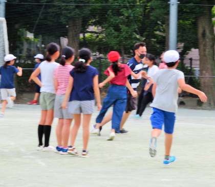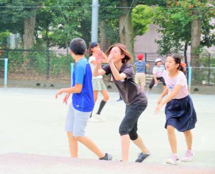 5・6年生の休み時間も、子どもと先生の「共遊び」の姿が見られます。