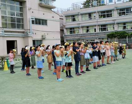 今日もさわやかで心地よい朝を迎えました。金管バンドの朝練習は、運動会に向けて校庭で行いました。