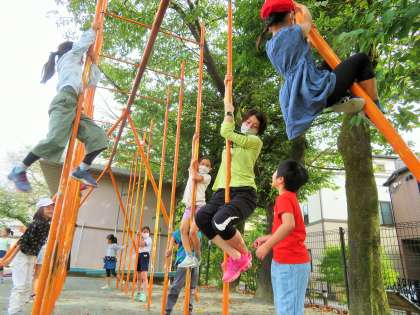 先生も登り棒に挑戦しています!