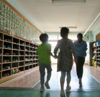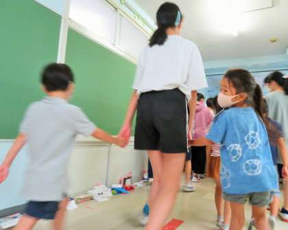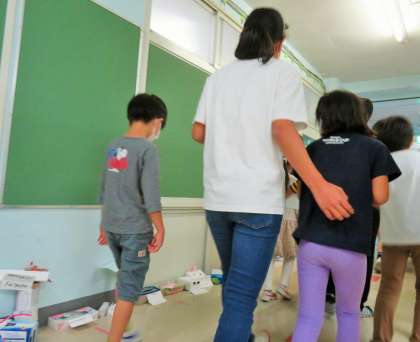 昨日の昼休みは「たてわり班集会」を行いました。松丘小学校の特色ある活動の一つとして、思いやりの気持ちをさらに向上させるための活動です。一つの班に1年生から6年生までが入って縦割りの集団で遊びます。まずは、1年生のお迎えです。