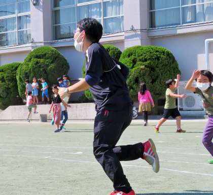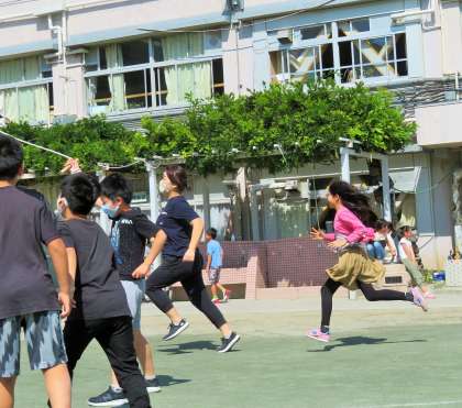 他の学年は、体育館、屋上、教室などで分散して遊んでいます。私は3年生と鬼ごっこのため、2枚しか写真が撮れませんでした。