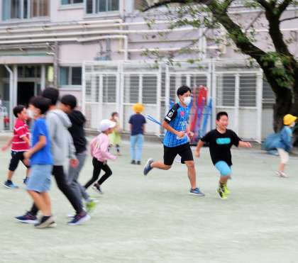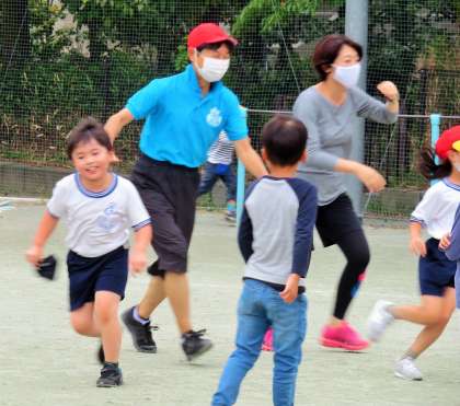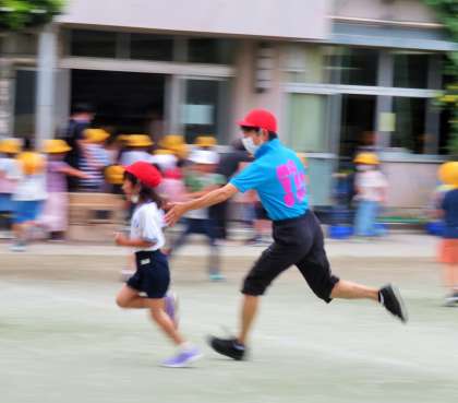 私は2年生と鬼ごっこですが、多くの先生が遊んでいます!
