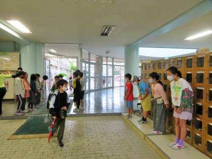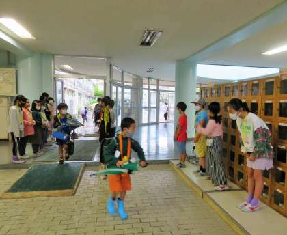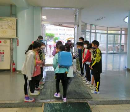 「優郷の学び舎」あいさつ運動は3年生の3組、4組が担当です。