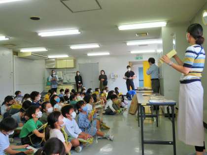 2年生は「町たんけん」で、地域にある桜屋米店の方に出張授業に来ていただきました。サンプルをたくさん持ってきていただきわかりやすくお話をいただきました。