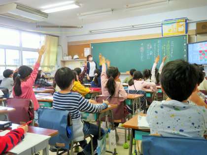 授業前から和やかな雰囲気で、担任の先生との信頼関係が強く感じられました。また、明るく、やる気いっぱいの姿が見られ嬉しく思いました。