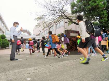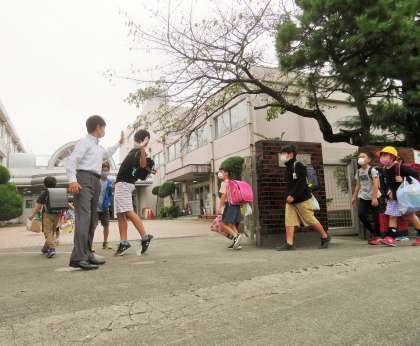 秋晴れでさわやかな日が続いています。子どもたちは、今日も明るく元気に登校しています。