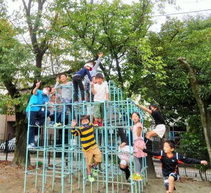 松丘小学校では、始業前の朝遊びに毎日取り組んでいます。ボール遊びや一輪車、うんてい、登り棒、鉄棒、ジャングルジムが人気です。一定の準備を終えた子からどんどん遊びに出てきます。