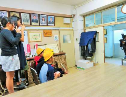 6年生の卒業アルバム写真撮影があり、グループ写真を撮影しました。撮影場所として、校長室を選んだグループがありました。子どもたちは、とてもよい表情で撮影に臨んでいました。