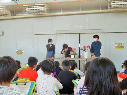 2年生の町たんけんの授業では、桜新町にあるお花屋「ユー花園」の方々が、出張授業に来てくださいました。