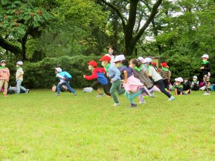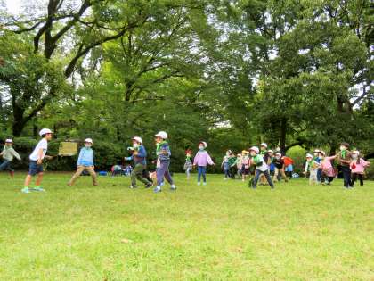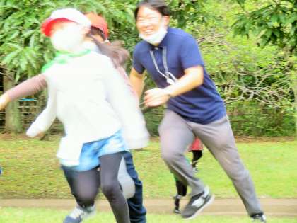 鬼ごっこをしたり、だるまさんが転んだをしたり、寝転がって遊んだりしました。