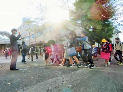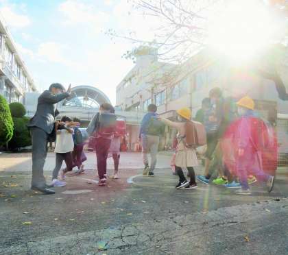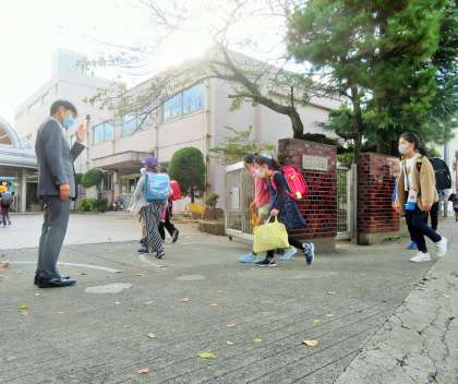 今日は爽やかな秋晴れの1日になりました。10月2回目の土曜授業日ですが、子どもたちは元気に登校しています。正門であいさつをしていると、さっそく2年生が私を見つけて鬼ごっこへと連れていきます!
