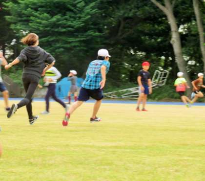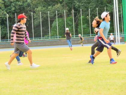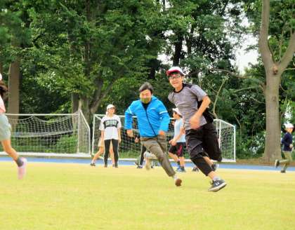 陸上競技場の最後は、6年生全員で鬼ごっこをして遊びました。先生も鬼役です!
