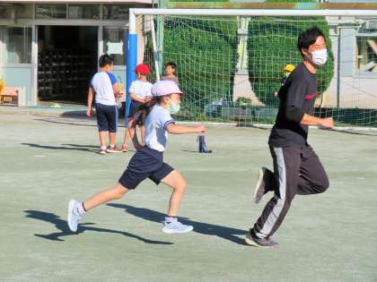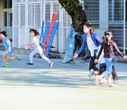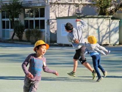 朝日を浴びて遊んで、子どもたちはとっても健康的です!