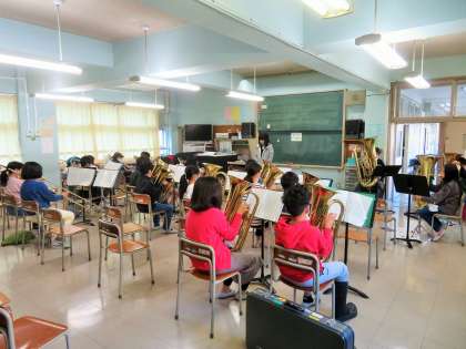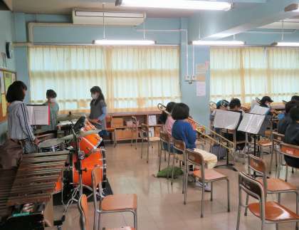 金管バンドの朝練習は、2学期も毎朝続いています。音楽室に入ると、いつも「おはようございます!」の爽やかなあいさつがあり温かい気持ちになります。新たに4年生が入部をしましたが、もう簡単な演奏ができるまで上達しつつあります。