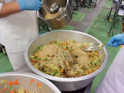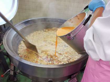 給食のごはんは、先月末ぐらいからお米に新米を混ぜて炊いていました。