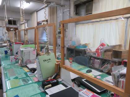 松丘小学校では、職員室からクラスターが発生しないように、主事手作りのパーテーションを設置しました。換気はもちろん、昼食はお互い離れた机で給食を食べる、学年会は教室で行うなどの感染症対策を進めています。