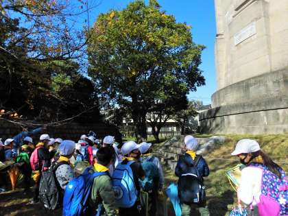 駒沢給水塔風景資産保存会の方々に案内していただきました。普段は非公開ですが、松丘小学校3年生のために特別に公開していただきました。アールデコ様式の美しい塔でした。よく話を聞き、メモを取り、学びを深めてきました。