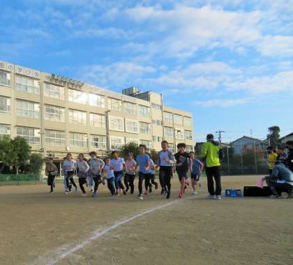 今朝は、「優郷の学び舎」松丘小学校、弦巻小学校の子どもたちが弦巻中学校に集まり、7時30分から世田谷子ども駅伝に向けて、合同での朝練習を行いました。初めてタイムトライアルを行いましたが、子どもたちはやる気でいっぱいです!