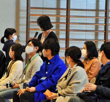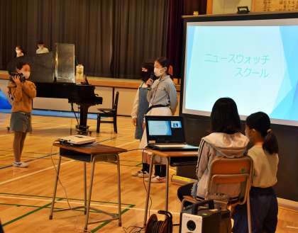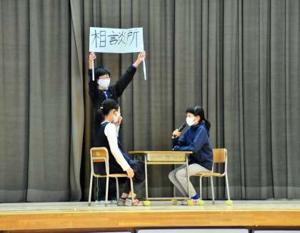 2組は「自分たちでできること」を大切にしながら考え、まとめました。難しい内容を難しくならないように伝える方法を考え、会場にいる保護者の方へのインタビューを行うなど、見ている人を飽きさせない工夫をしました。お答えいただきありがとうございました。