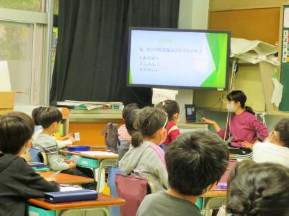 今日は朝の時間に、委員会企画集会がありました。放送や動画を活用しながらの発表です。今回の発表は、園芸・飼育委員会です。クイズを織り交ぜるなどの工夫があり、楽しみながら委員会の活動内容を知ることができました。