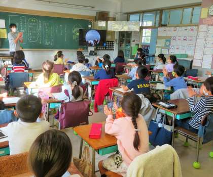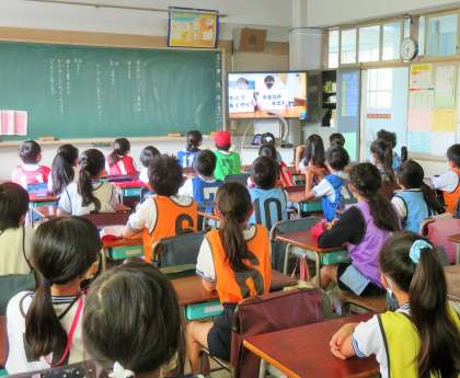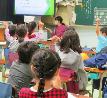 子どもたちは、ワクワクしながら集中してパワーポイントや動画を見て、クイズに正解すると思わずガッツポーズがでていました。
