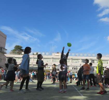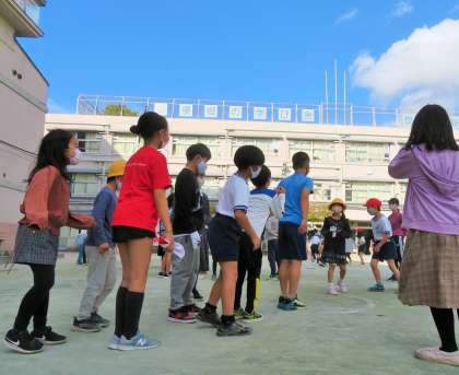 校庭の様子です。6年生は、どの子も楽しく遊べるように考えています。