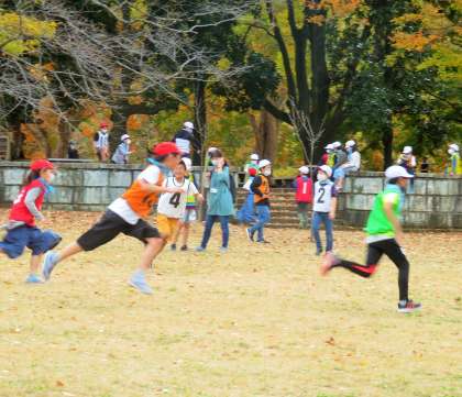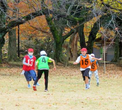 午後からはクラスごとに遊びました。「ドロケイ」など、鬼ごっこが多くありました。