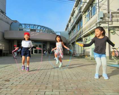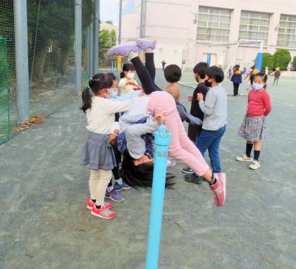 松丘小学校では、始業前の朝遊びに毎日取り組んでいます。今年度は蜜を避ける観点から、1・2年生のみの実施です。
