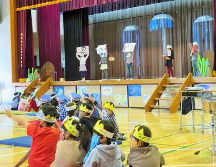 1年生は「わたしたちにできること うみのゆたかさをまもろう」をテーマにしました。