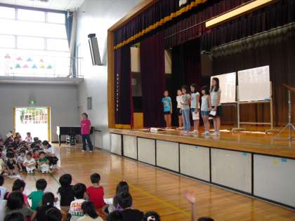 集会委員が事前に調べた松小の豆知識を、クイズ形式で楽しく学ぶことができました。