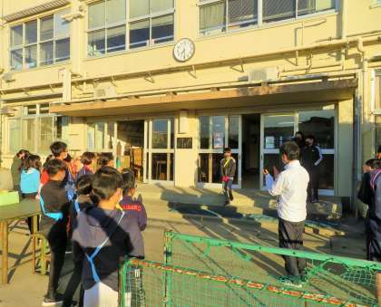 今朝は、「第10回世田谷子ども駅伝」(学び舎対抗駅伝)に向けての合同練習会です。「優郷の学び舎」からは、男子1チーム、女子1チームがエントリーしています。弦巻中学校、弦巻小学校、松丘小学校から、小学生6名、中学生4名がチームを組み、たすきリレーをします。