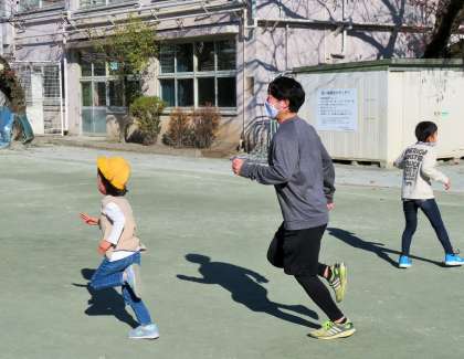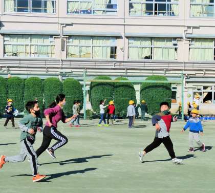 松丘小学校の休み時間は、子どもと教師が一緒に遊ぶ「共遊び」を奨励しています。遊びを通して、授業中だけでは分からない、一人一人のよいところに気づいたり、ほんの小さな変化や情報も、この共遊びの中から得られればと思っています。