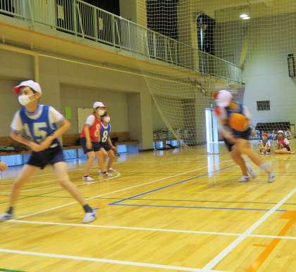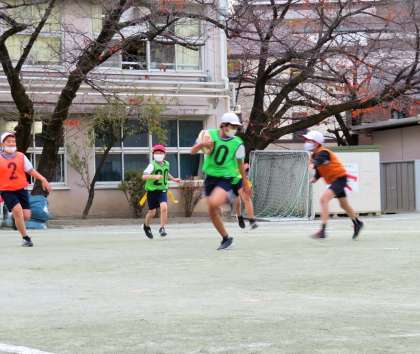 写真は、バスケットボール、タグラグビークラブの様子です。