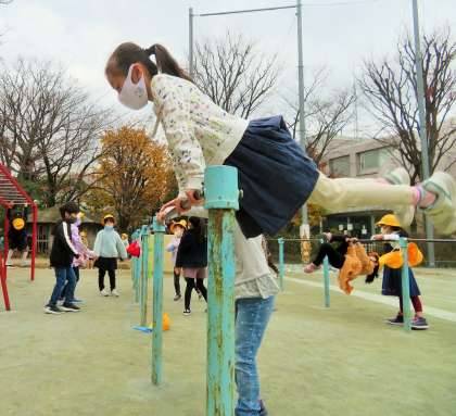 松丘小学校の特色の一つに、休み時間は校庭での「外遊び」があります。現在のコロナ渦では、校庭、屋上、体育館、教室と分散して遊んでいますが、私は、体力づくりの原点は「外遊び」と考えています。休み時間に、固定遊具で遊んだり、縄跳び、一輪車などで遊んだりすることにより、自然とバランス感覚など、様々な力が身についていきます。