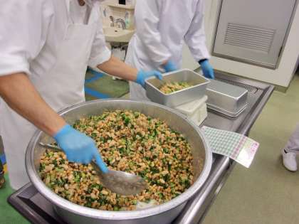 給食のパンは、パン屋さんが作って工場から運んできてくれています。