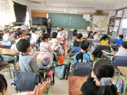 職員室から話をしていますが、いつも気持ちのいいあいさつや返事が教室から聞こえてくるので話していて嬉しいです。表彰では温かい拍手が送られていました!