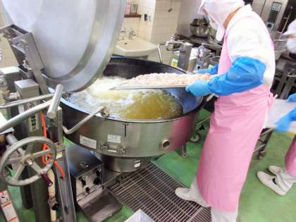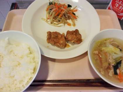 給食では、から揚げにして甘酢ソースをかけて作りました。