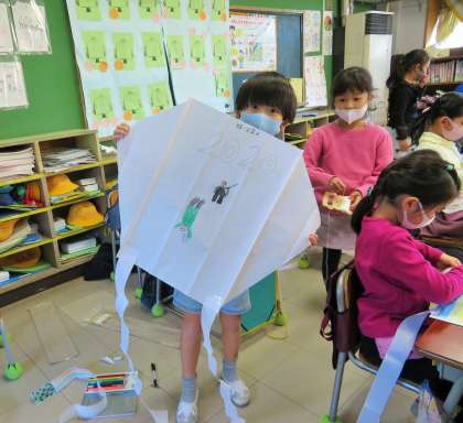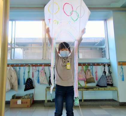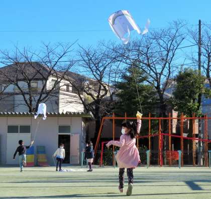 生活科「冬とともだち」の単元で、たこ作りとたこ揚げをしました。