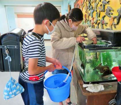 委員会活動は1時間目がはじまる前に、様々な活動に取り組んでいます。今日は、ウーパールーパのお世話、給食献立表の記入、朝の放送、ウサギのお世話、校庭整備など、盛りだくさんの活躍で、しっかりと松丘小学校を支えてくれています。