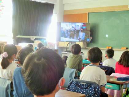 子どもたちは、集中して動画を見ていました。委員会の発表が終わると、多くのクラスから拍手が沸き起こっていました。温かくて素敵な雰囲気でした。
