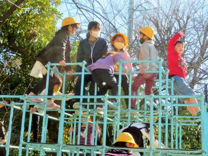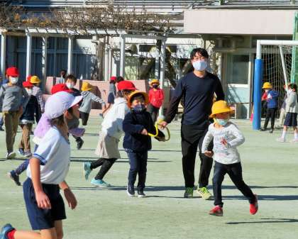 松丘小学校の休み時間は、校庭いっぱいに広がって遊ぶ子どもたちの笑顔ではちきれそうです。中でも、子どもたちと一緒に先生たちも遊んでいると、いっそう笑顔が膨らみます!