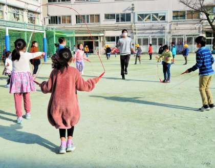 私も2年生と鬼ごっこですが、今日も多くの先生が子どもたちと一緒に遊んでいます!