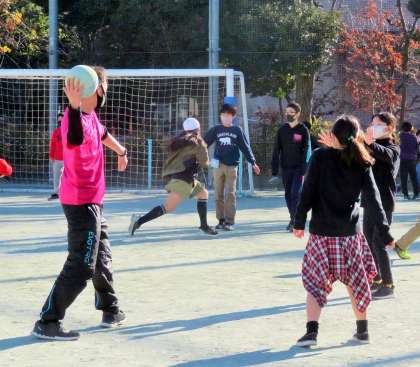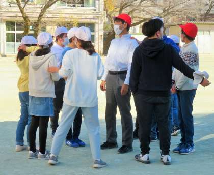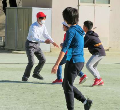 私は昼休みの駅伝練習が終わり、久しぶりに6年生と鬼ごっこです。肩もみが上手な子もいます!