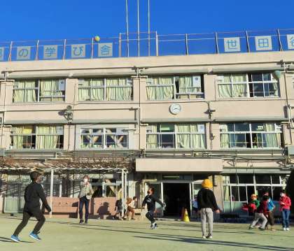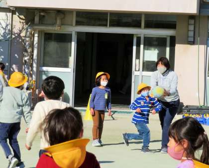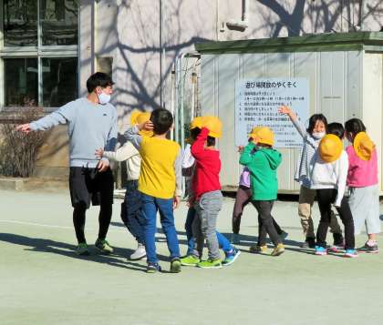 休み時間の校庭には、先生と子どもとの共遊びの姿が多く見られます。私は、外遊びが「体力づくりの原点」と考えています。副校長先生も一緒に遊んでいます!