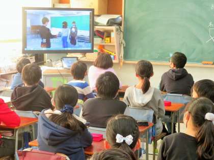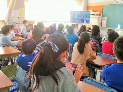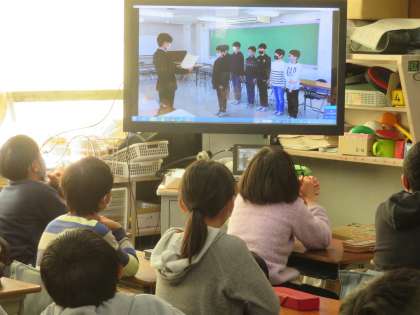 表彰の様子を動画で流しました。それぞれの教室から大きな拍手が聞こえてきました。