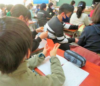 「松丘まつり」のお礼として、1年生からお手紙をもらった6年生の様子です。