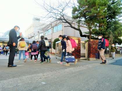 今日も厳しい寒さの朝を迎えましたが、子どもたちは元気いっぱいに登校してきました。東京都の新規感染者数は、3日連続で2000人を超える極めて高い水準です。子どもたちの健康面には十分に配慮しながら生活していきます。ご家庭でのご協力も引き続きよろしくお願いいたします。